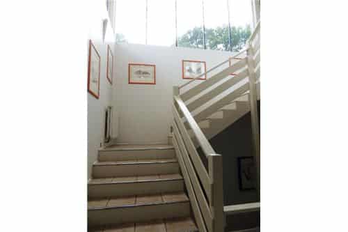 Широкая лестница ведет к вершине – галерея с главным входом и верхней террасой с парковкой и в нижних комнатах, где расположены еще одна квартира с полностью отдельным входом. Нижняя квартира также имеет большую гостиную, кухню со столовой, две детские комнаты и большую ванную комнату и отдельные туалеты. Из нижних комнат находится выход на третью – нижняя терраса с отдельным входом.