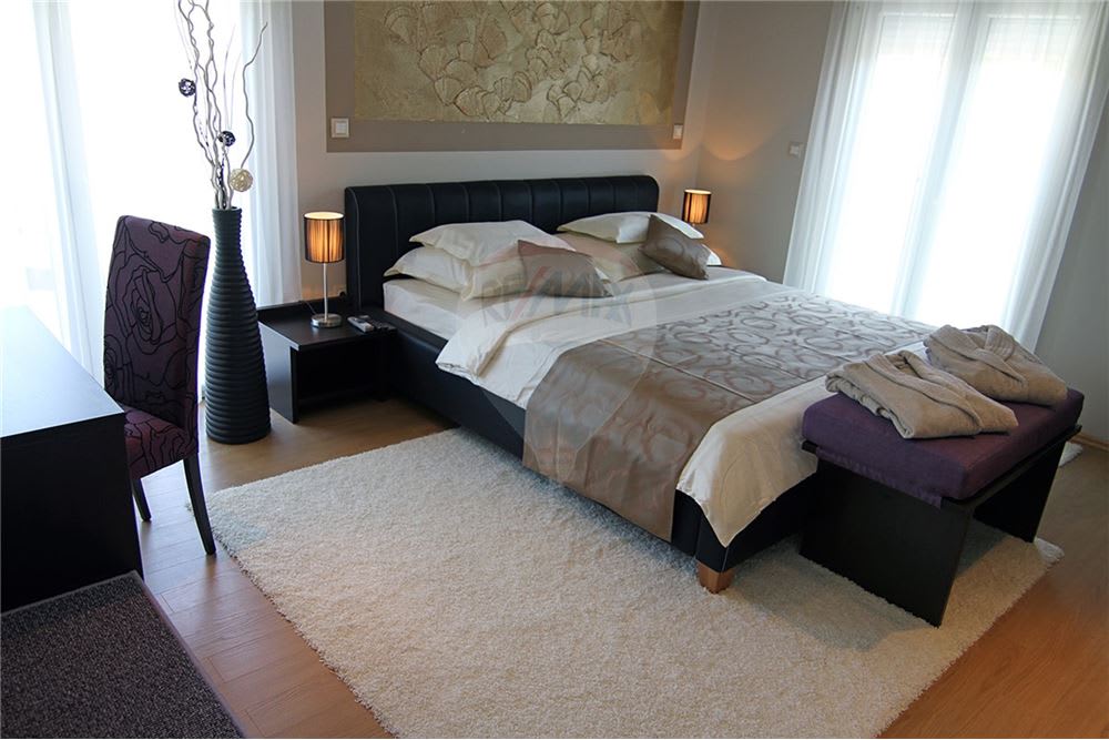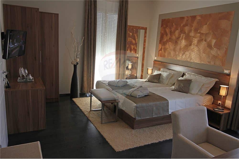 Роскошный семейный отель, окруженный красивым ландшафтным садом, был построен в 2013 году, площадь: 589,47 м2. Отель находится на участке земли общей площадью 1,480 м2 и относится к категории “4 звезды”. Он расположен в небольшом городке, примерно в 4 км от Пулы. В отеле создана атмосфера роскоши и элегантности, с 6 двухместными номерами с собственной ванной комнатой, 2 полулюксами и 2 апартаментами с отдельной спальней и удобной кухней. Все номера соединены, что означает, что отдельная комната может быть подключена к соседству, некоторые из них с дополнительными кроватями. В каждом номере также есть большая терраса, которая позволяет гостям наслаждаться уединением и роскошным пребыванием.